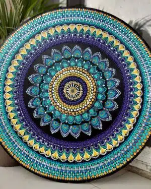 Dot Mandala is the classical version of this art form with its genesis in Hindu and Buddhist theosophy – often painted delicately on temple walls and sometimes even roofs, beginning from the center, this art form heads outwards using only dots to create captivating visual stories. Mandalas symbolize universal enlightenment brought about by their symmetrical and detailed look.