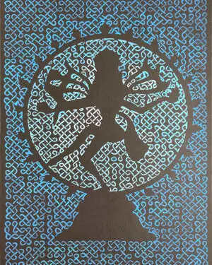 Sanjhi is the art of cutting out negative spaces from a paper, to depict a scene, somewhat like a stencil. The term Sanjhi is derived from Sanjh or dusk. It is related to the ritualistic practice of unveiling the rangolis (floor paintings) in the temples with chanting at dusk.
