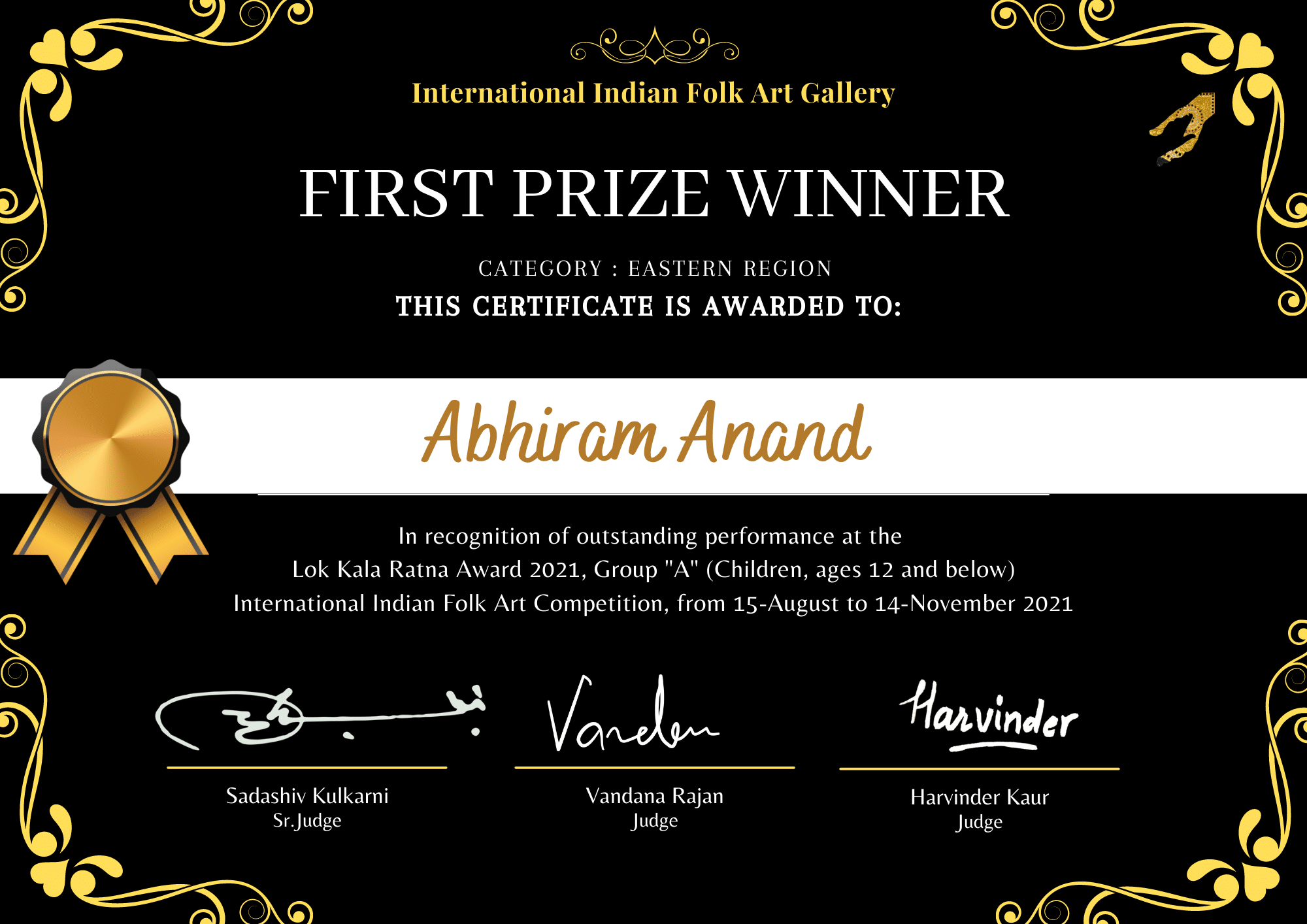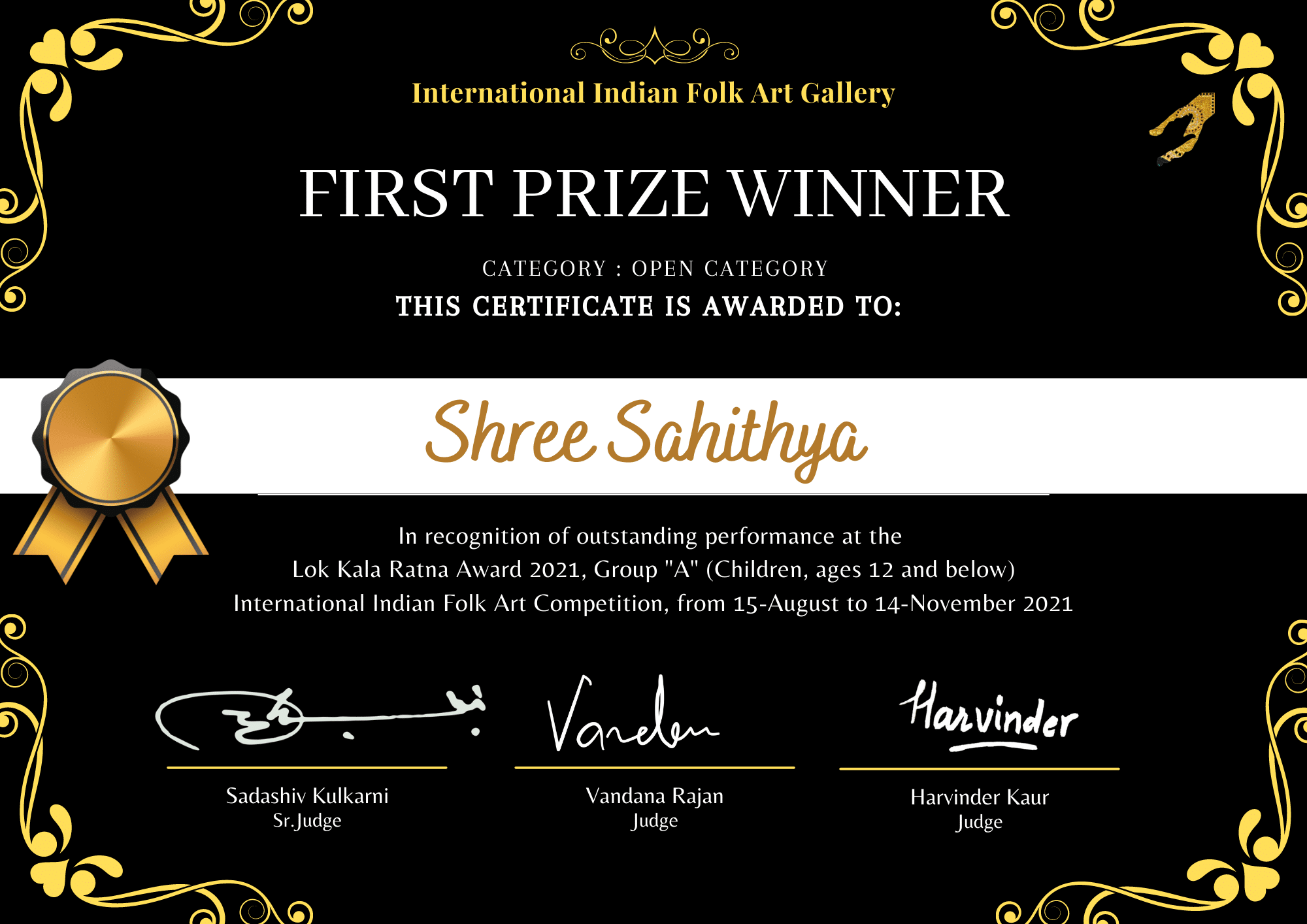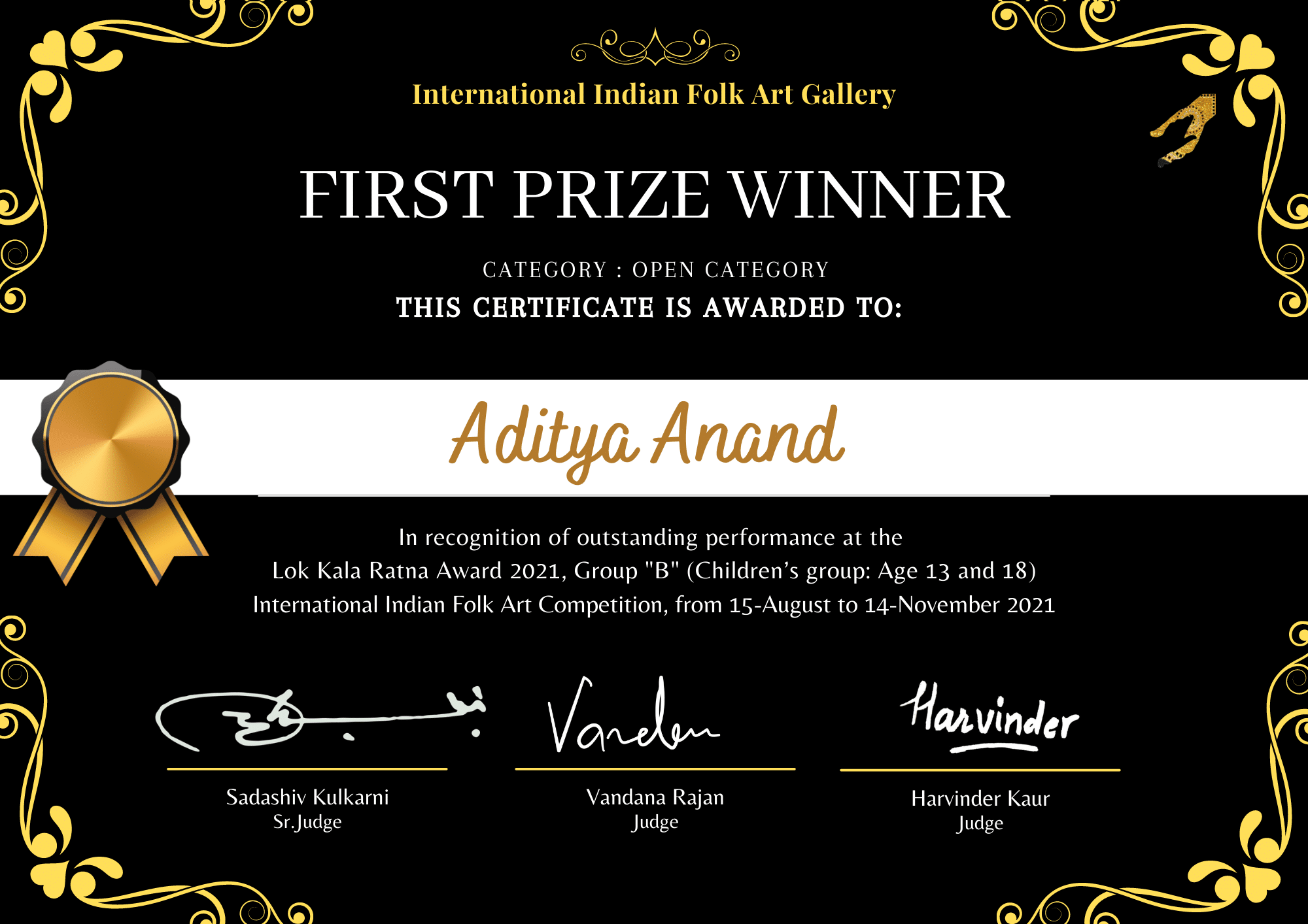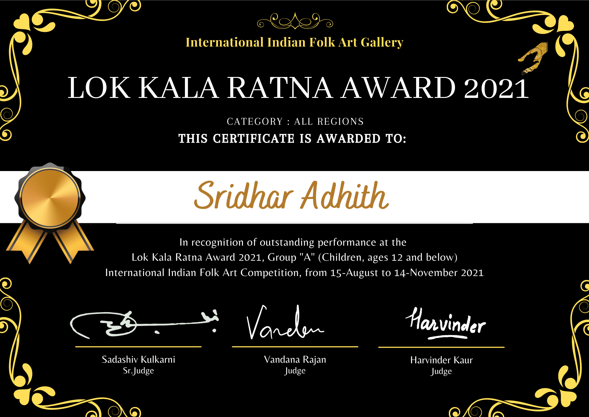 From each artist group, one winner will be selected from each of these five categories. Further, the highest ranking artist in the competition from each artist group will be awarded “Lok Kala Ratna Award 2021”. All winners will receive a cash prize, along with a certificate of recognition, free personal online gallery as “featured artist“.