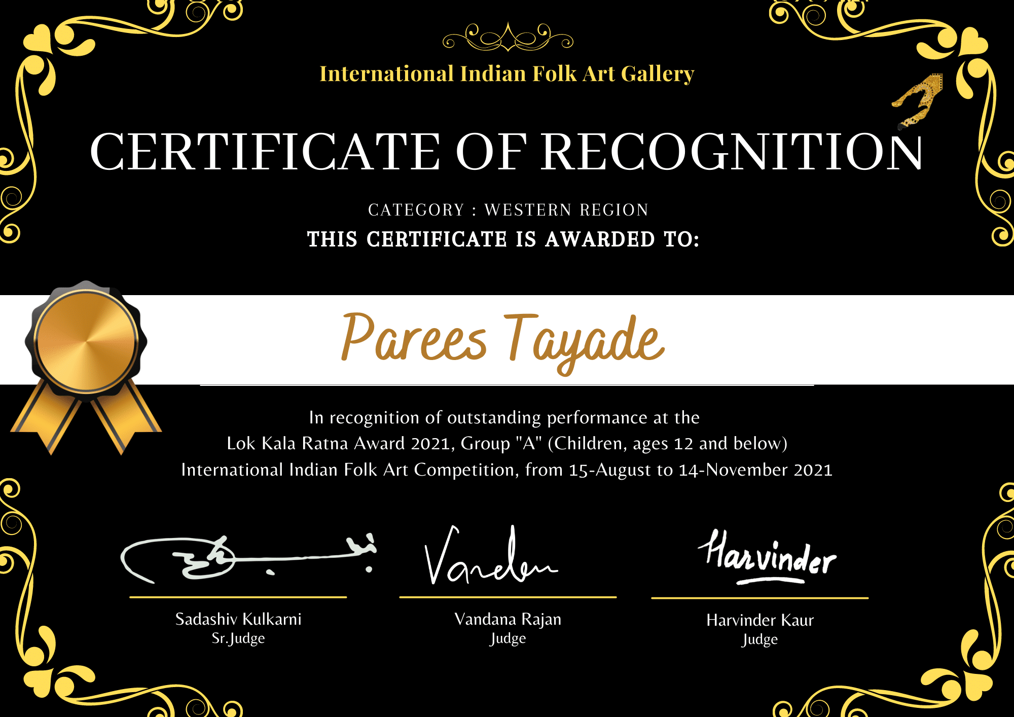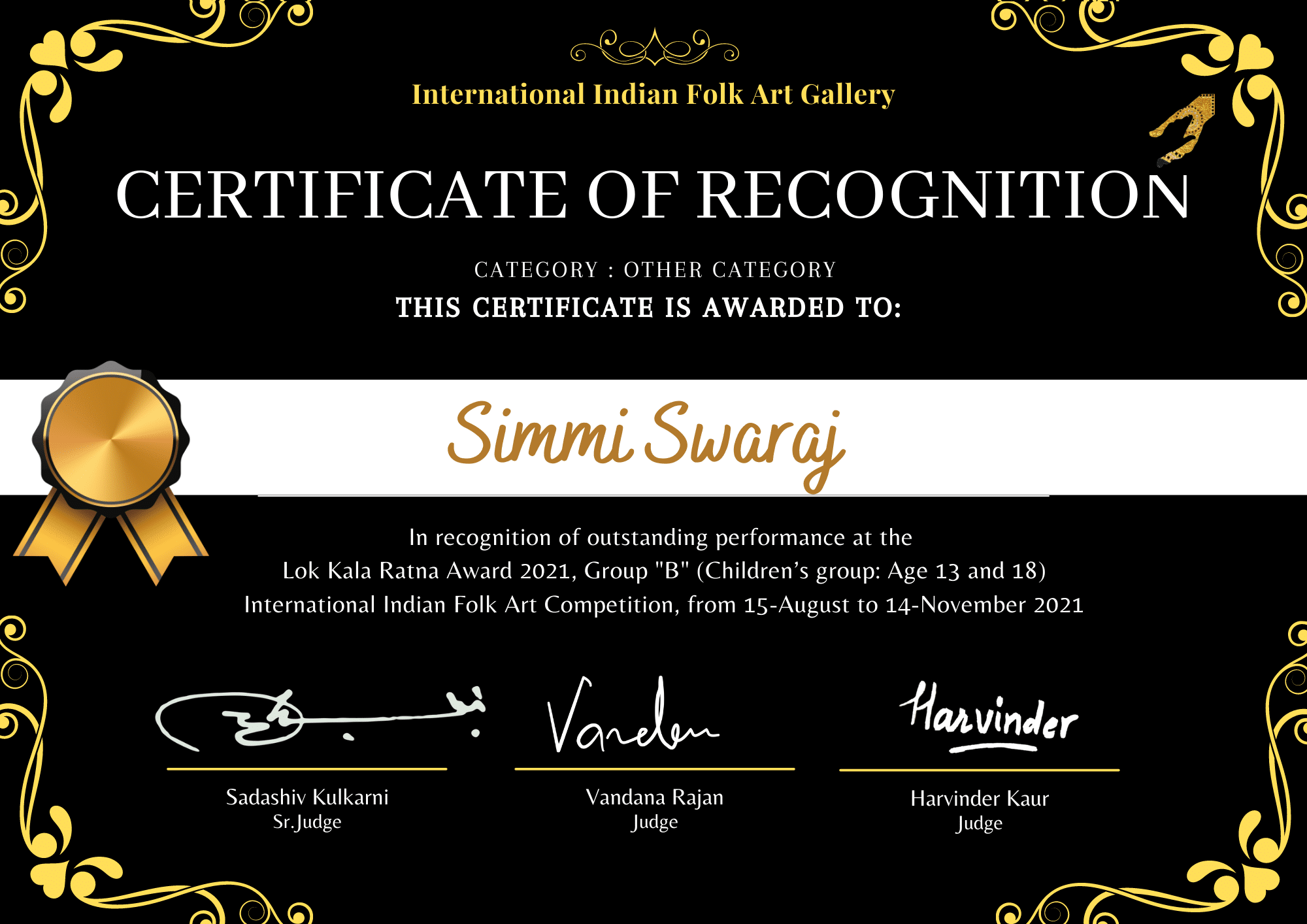 - Lok Kala Ratna Award 2021, Group A (Cash Prize ₹ 10,000)
